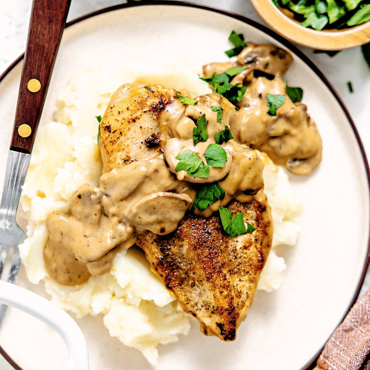 #4 Cream of Mushroom ChickenA quick skillet meal perfect for family dinner that is ready in 30 minutes.